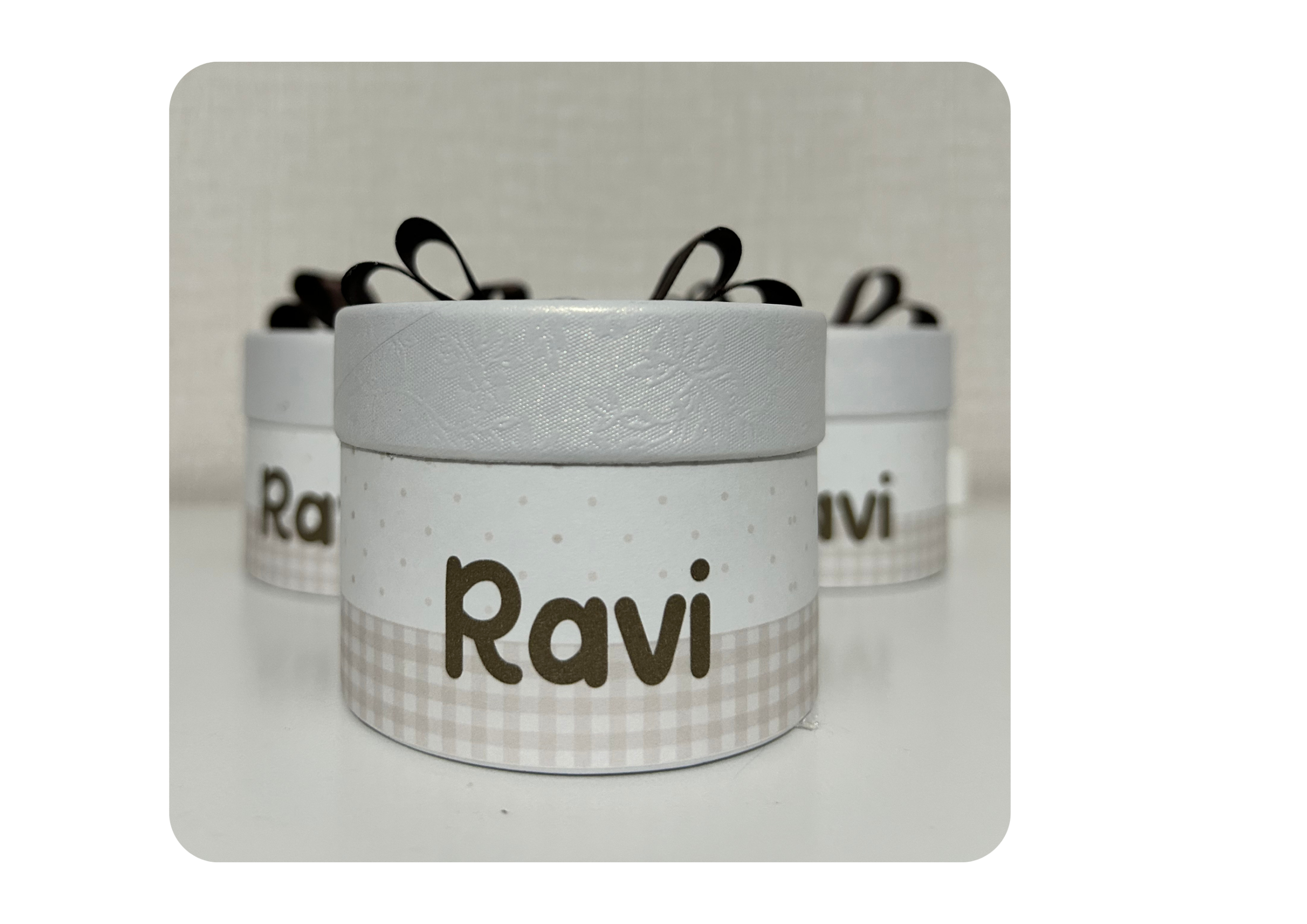 Essa caixinha cartonada no formato redondo é perfeita para maternidades, batizados, aniversários e outras ocasiões que merecem um mimo especial.